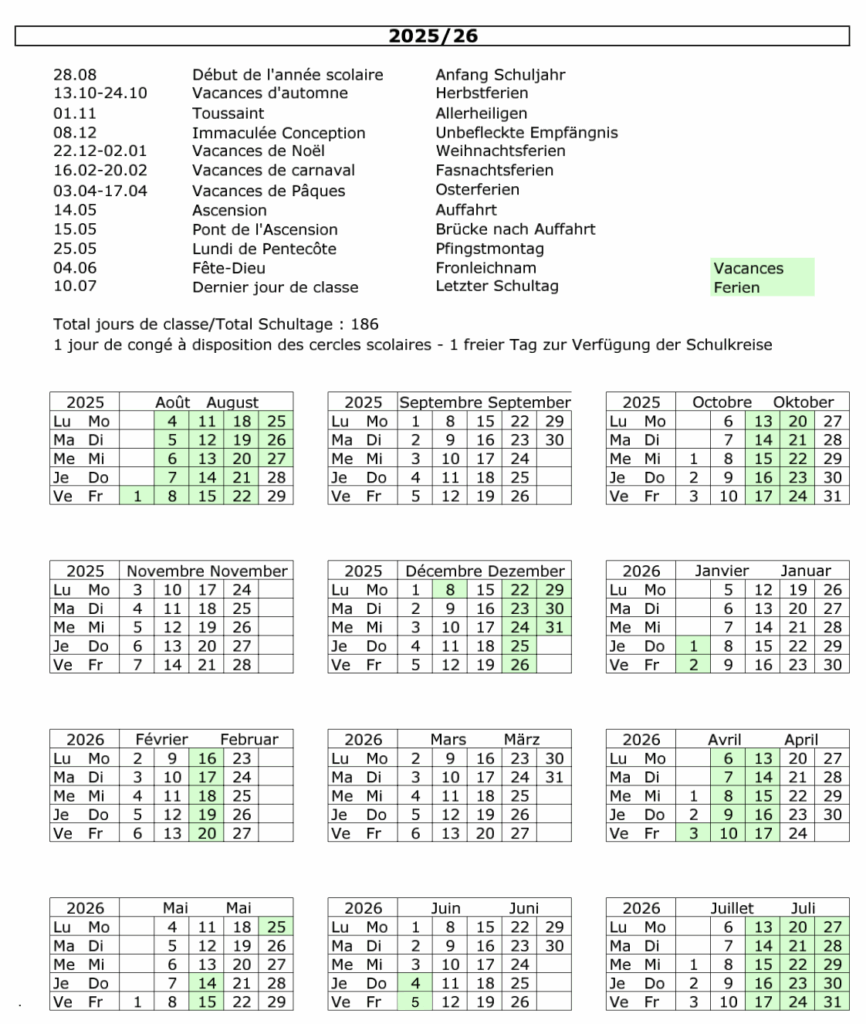 Les calendriers scolaires sont disponibles sur le site de la scolarité obligatoire OSSO :http://www.fr.ch/dics/fr/pub/formation/calendriers_scolaires.htm