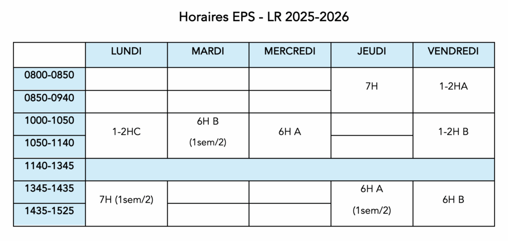 Les leçons de sport se déroulent dans la halle de gymnastique de La Roche ou celle de Pont-la-Ville. Une tenue de sport est exigée et les semelles des chaussures ne doivent pas marquer le sol. La douche est en principe obligatoire pour les 3H à 8H. De plus, la tenue de sport doit impérativement être changée après la leçon. Pour être dispensé d’un cours d’éducation physique, l’élève doit apporter un certificat médical ou une demande écrite signée des parents.